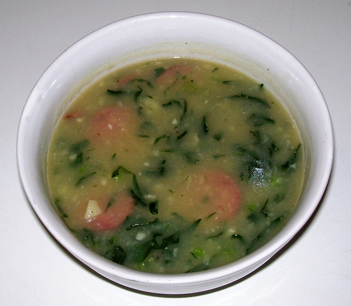 Caldo verde hails from northern Portugal, but has spread to pretty much anywhere Portuguese people have put down roots, thanks to its easy-to-get ingredients, simple recipe, and awesome flavor. While the meat in this soup is optional, I strongly encourage anyone looking to prepare this dish to make the effort to acquire some linguica, a garlicky, spicy Portuguese smoked sausage. It will be worth it. To make your own, you will need the following: